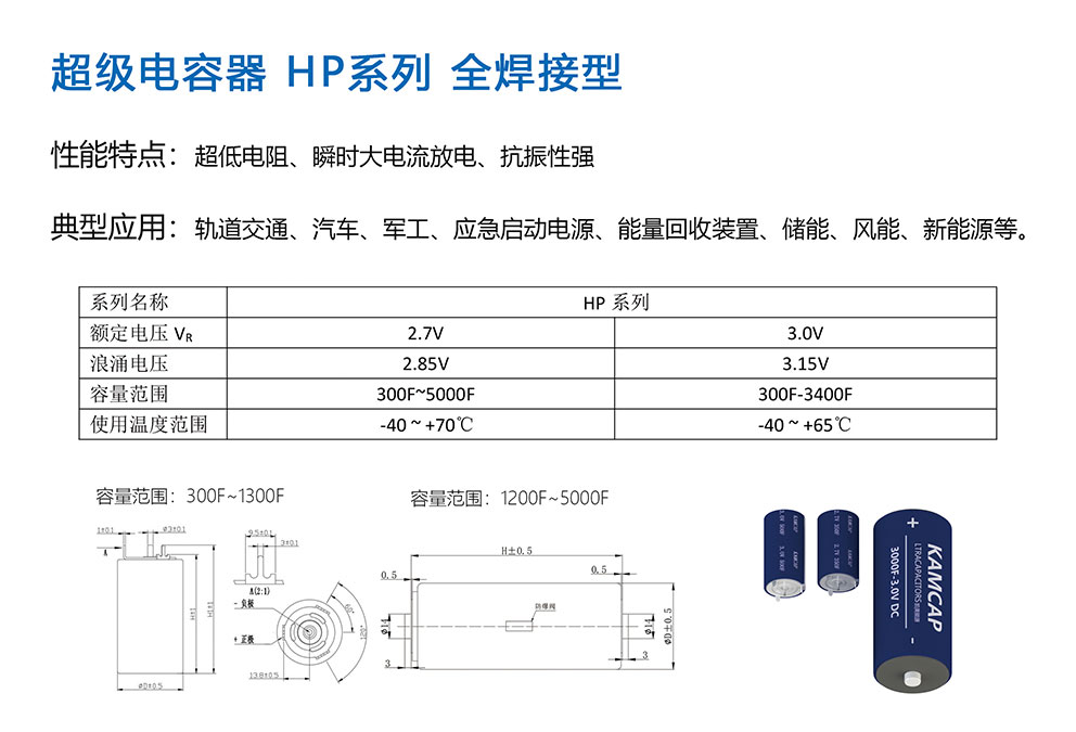 典型應(yīng)用:軌道交通、汽車、軍工、應(yīng)急啟動電源、能量回收裝置、儲能、風(fēng)能、新能源等